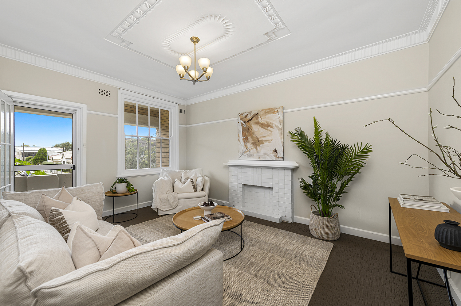 - Spacious light-filled living area opening to sunny balcony